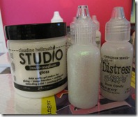 So, the first 2 contain: a pack of pop dots, 3 bottles of stickles and Claudine's Studio gloss medium. The next 2 are: